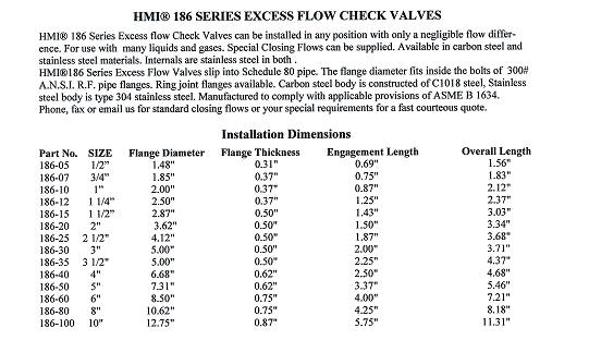 186 SERIES EXCESS FLOW CHECK VALVES